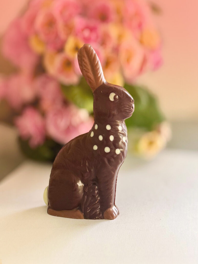 Wir verkaufen feine Schokolade von Sahnehäubchen aus Steffisburg. Beispielsweise mit Gianduja gefüllte Häschen.